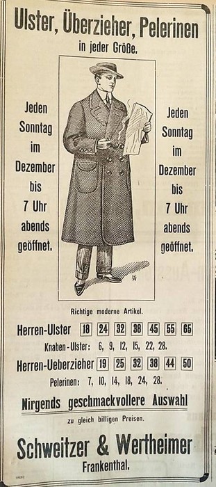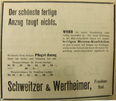1912 Anzeige von Schweitzer & Wertheimer in der Frankenthaler Zeitung.